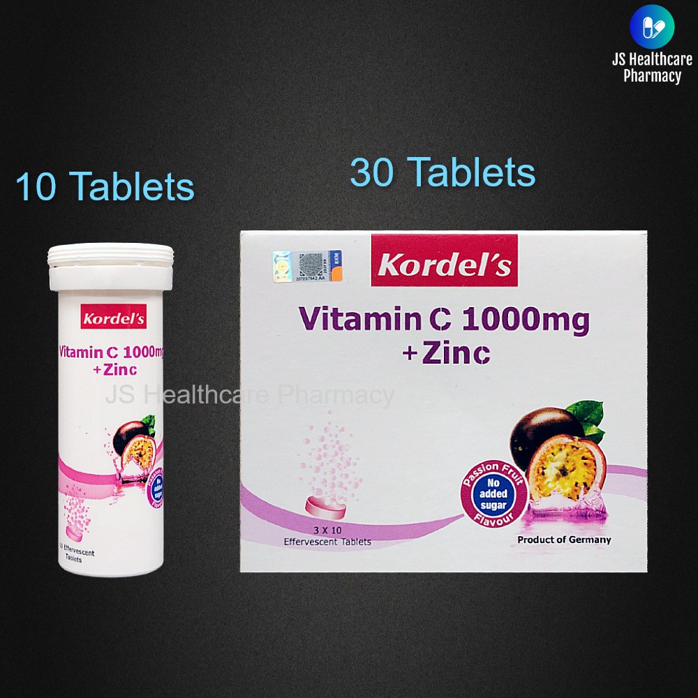 Description and Benefits Kordels Effervescent Vitamin C 1000 mg Zinc comes. It has been proven to give extra energy. Vitamin C 1000mg Zinc Passion Fruit 10s.